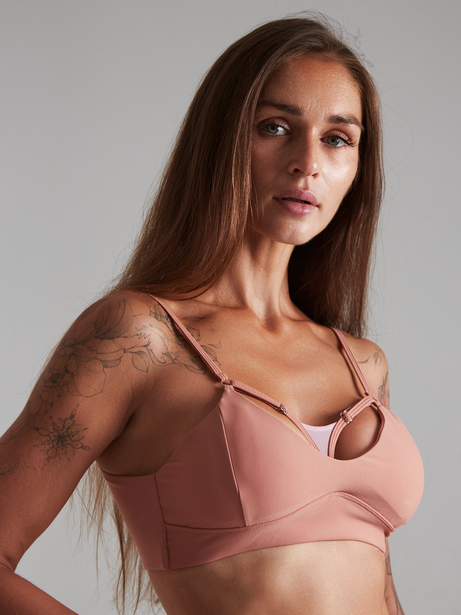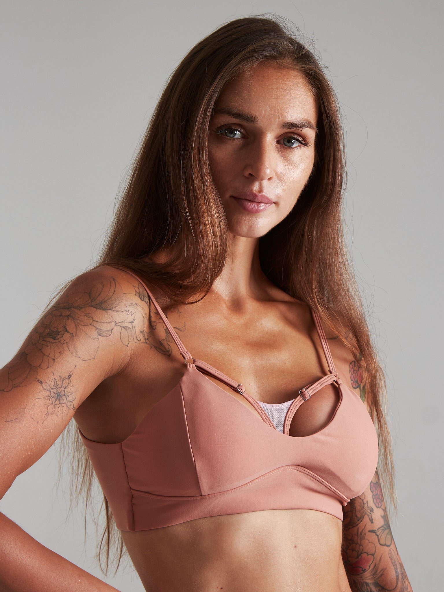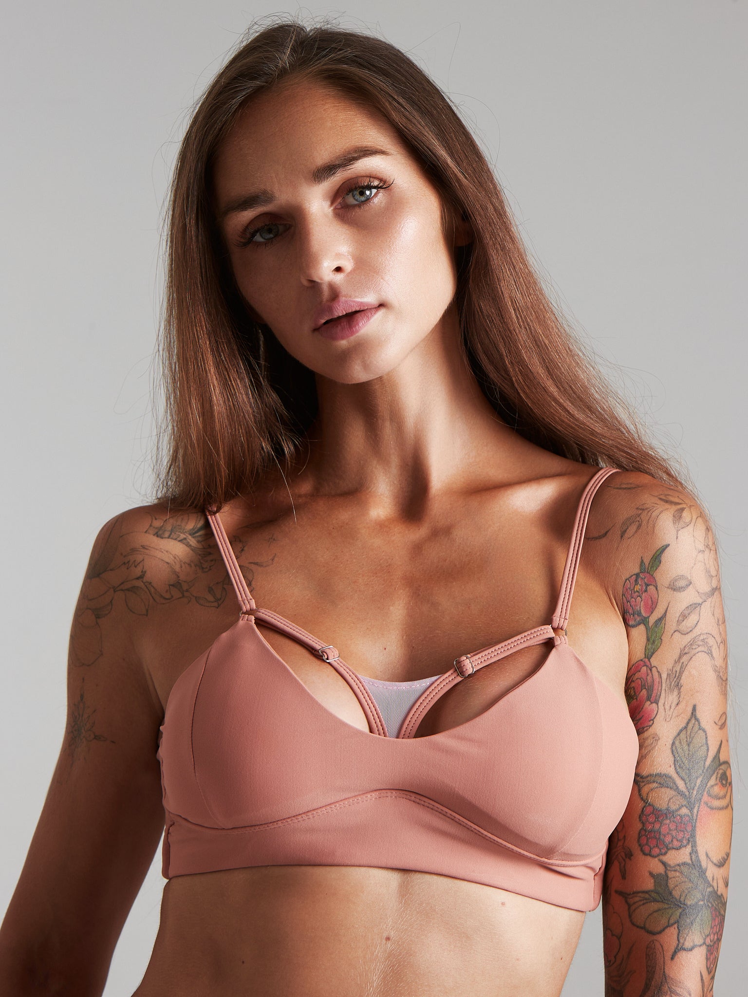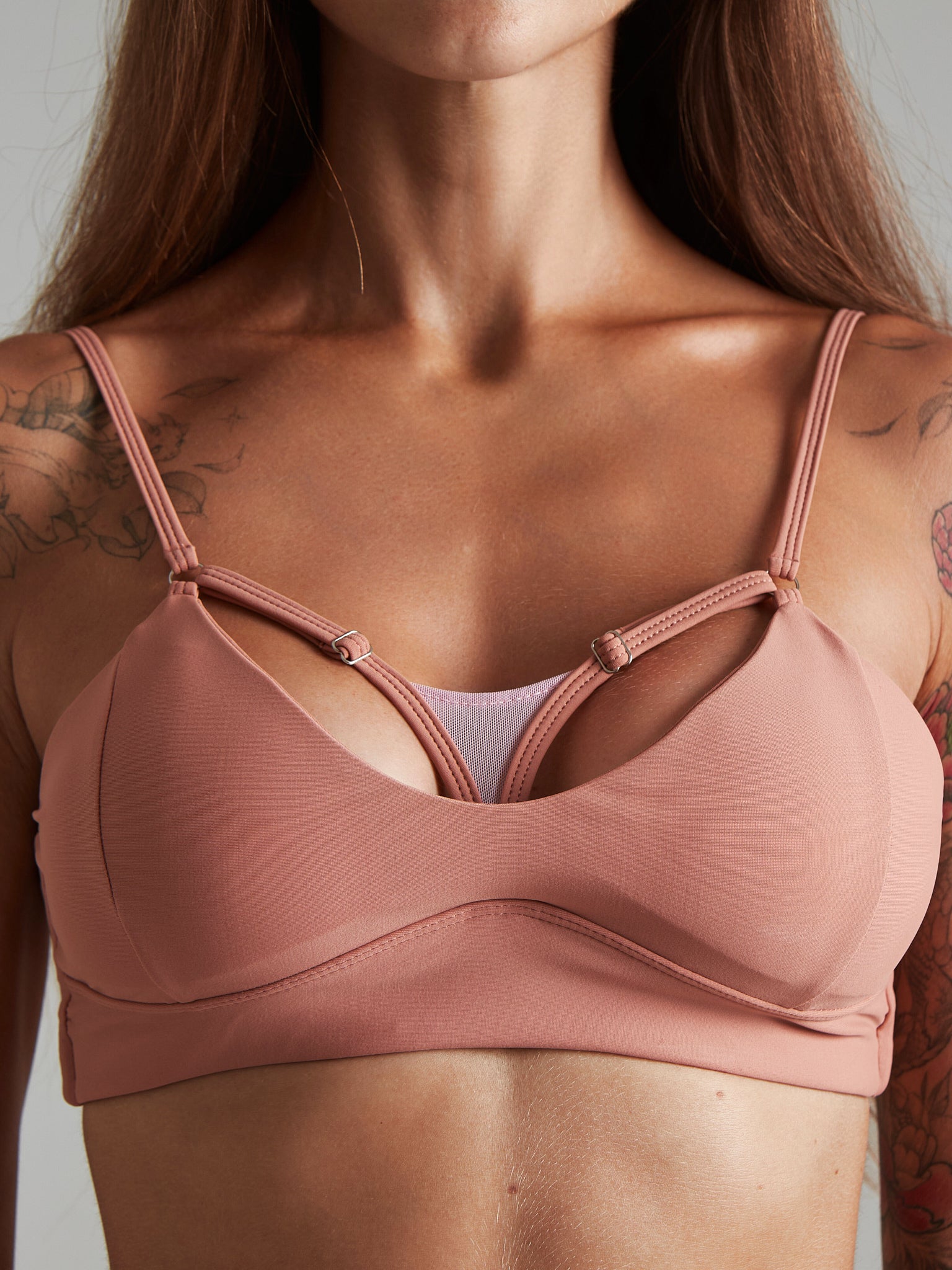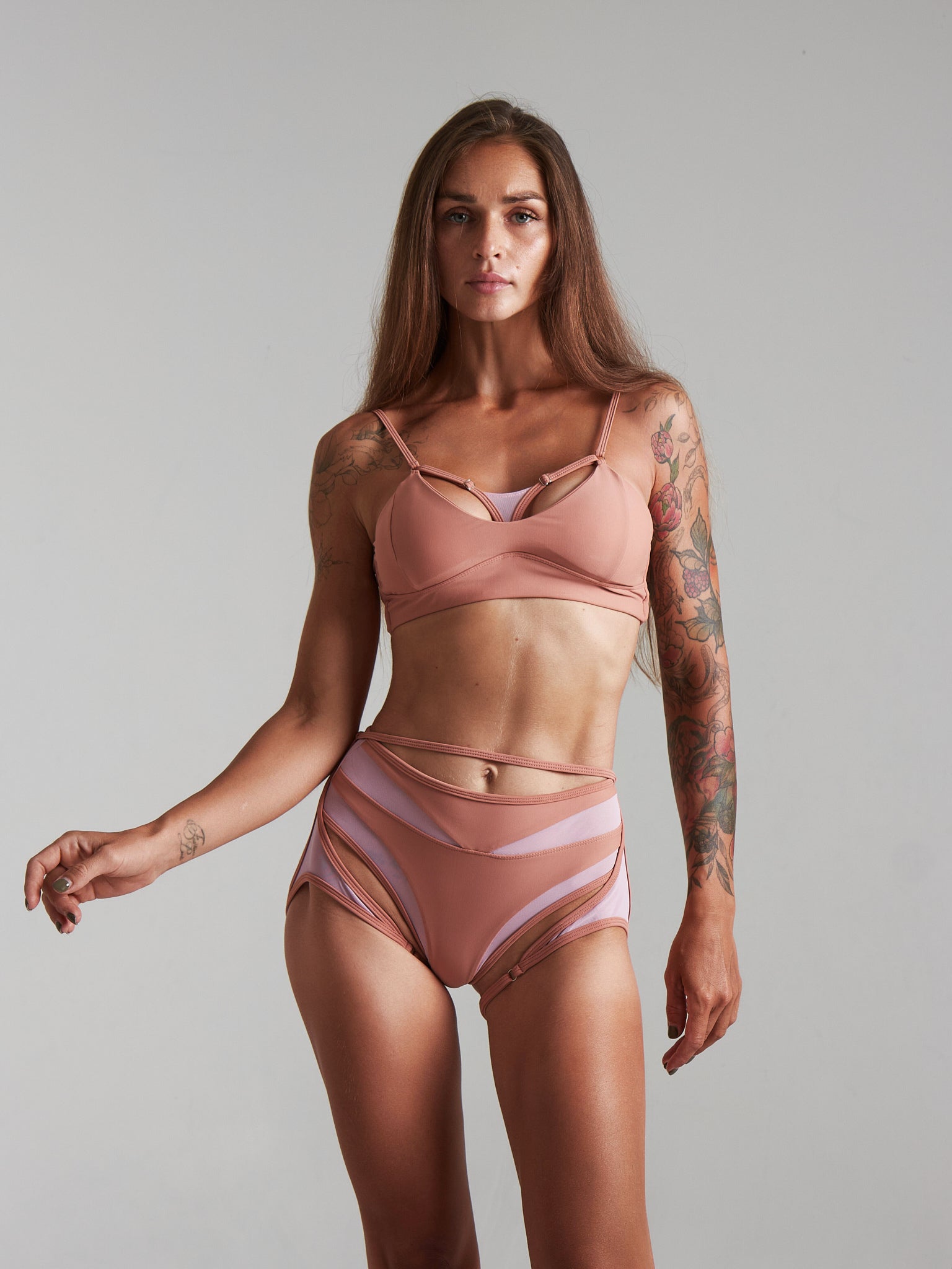Fierce top featuring flirty straps that trace the natural shape of your bust for a stunning, eye-catching effect. A supportive belt ensures a secure fit, while removable cups inside offer customizable comfort and coverage. Perfect for pole dance practice or high hills, this top blends bold design with practical support to keep you feeling confident and unstoppable during your performances.