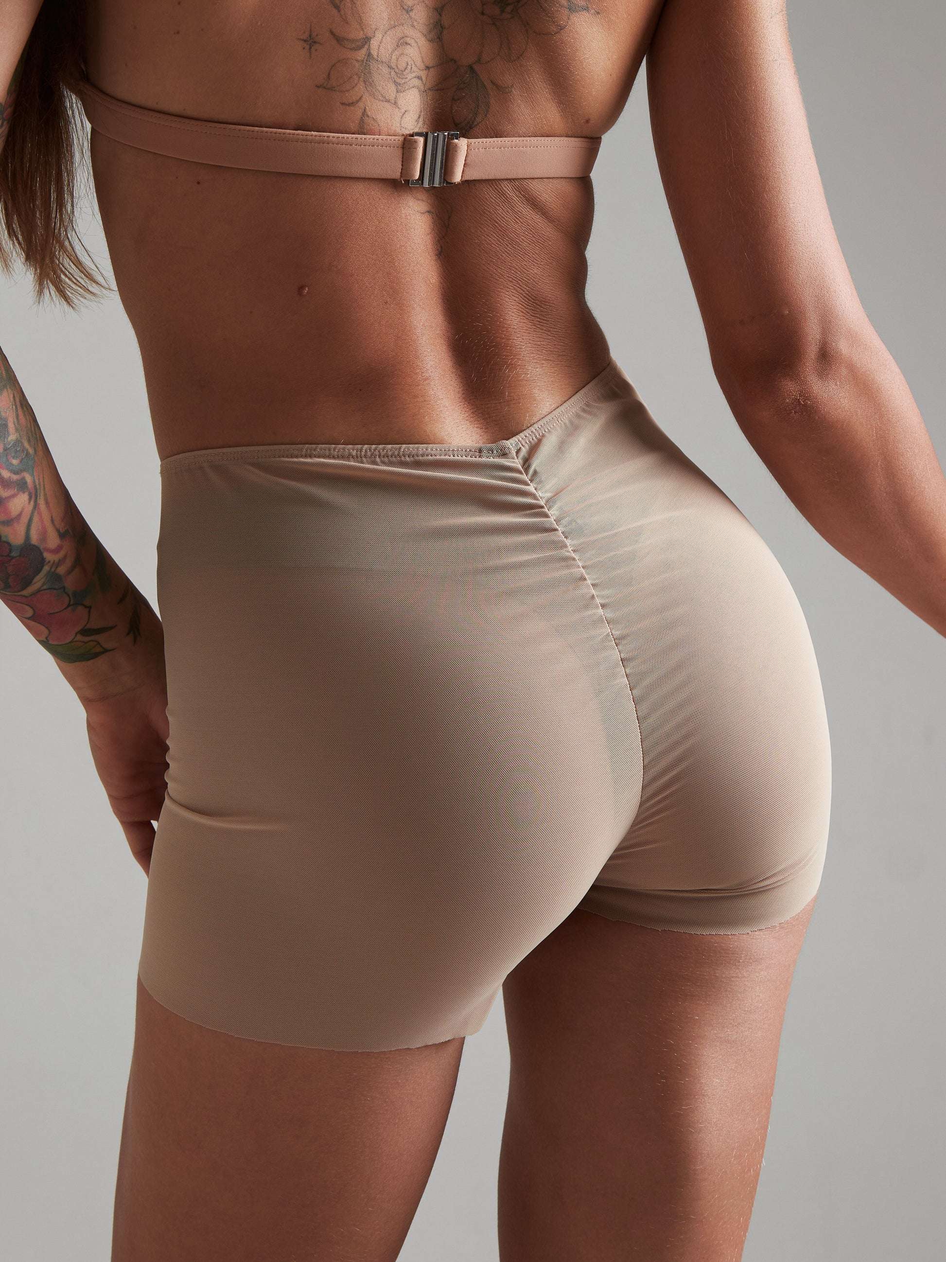 Feel bold and irresistible in these sexy pole shorts, crafted from tender mesh fabric that makes you feel effortlessly semi-naked and sexy. Designed with a cheeky cut, these twerk-ready dance wear bottoms hug your curves and enhance your moves, whether you're on the pole, the dance floor, or just owning your style.